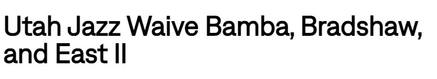 前6号秀在列!爵士官方:球队正式裁掉班巴、布拉德肖与伊斯特三名球员