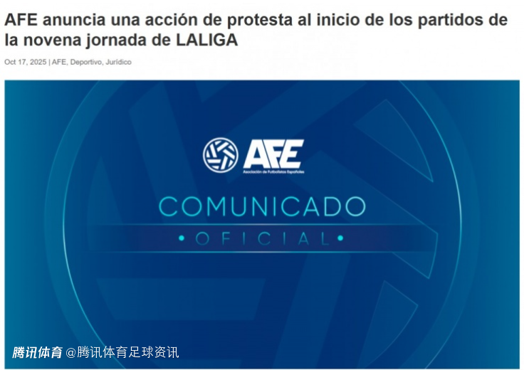 2025-10-18 10:00北京时间10月18日,西班牙足球运动员协会(AFE)官方发布声明,确认将在西甲第9轮所有比赛开球前组织抗议行动,反对西甲联盟在未充分沟通情况下推进海外赛事的决定。