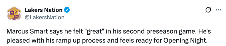 2025-10-18 14:00北京时间10月18日,NBA季前赛,湖人以116-117惜败国王,此役球队新援斯马特替补出战23分钟,11中5,拿到14分3篮板2助攻4抢断,赛后他接受了媒体的采访。