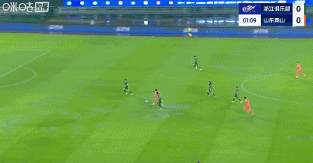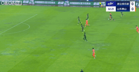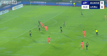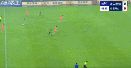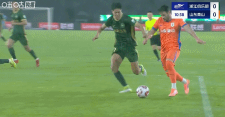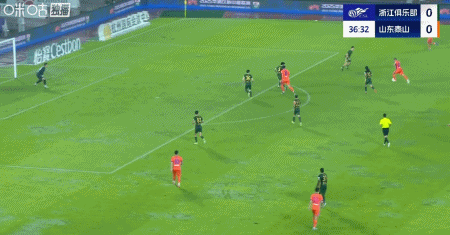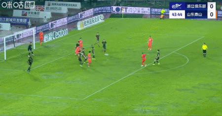 第44分钟,浙江队后卫解围不远,黄政宇贴地斩皮球弹地入网,山东泰山打破僵局,1-0。