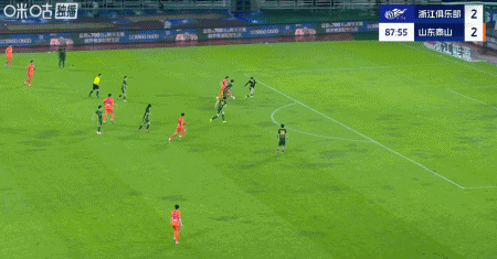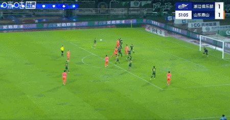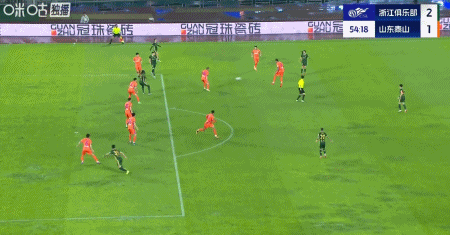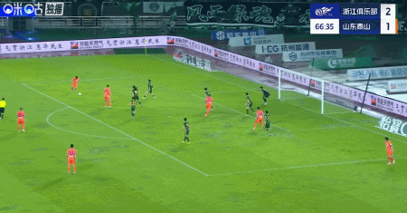 第54分钟,李提香禁区前沿送出直塞,奥乌苏禁区内拿球转身小角度抽射得手,浙江队2-1完成反超。