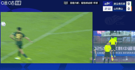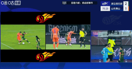 第27分钟,泽卡禁区内挑球打到浙江队后卫胳膊,但VAR时隔2分钟才介入,最终认定并非点球。