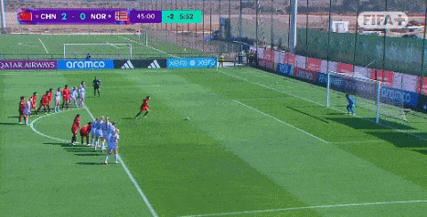 第16分钟,陈睿琳主罚任意球,她直接射门轰出世界波直挂死角,打入中国U17女足本届赛事首球,帮助球队1-0领先挪威。