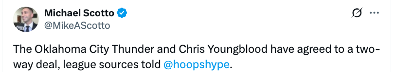 2025-10-19 02:00北京时间10月19日,据名记Scotto报道,雷霆和扬布拉德签下了一份双向合同,此前他们已经裁掉了怀特黑德、奥斯汀、莱昂斯。