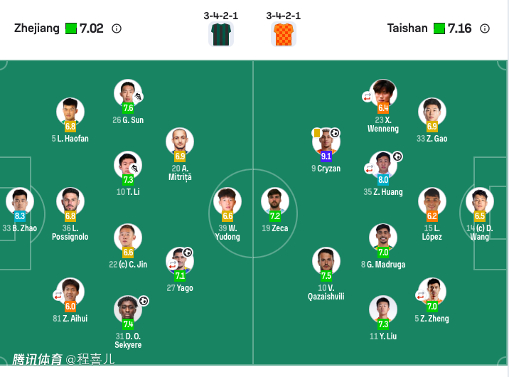 中超:浙江2-2泰山 瓦科造点+失点 黄政宇凌空斩 奥乌苏世界波