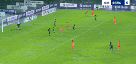 第36分钟,黄政宇禁区外突然起脚远射,皮球直奔死角而去,赵博腾空而起,再次贡献精彩扑救。