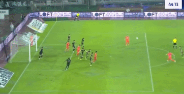 第45分钟,孙国文底线回传,洛佩斯前点冒顶,亚戈扫射破门,1比1!