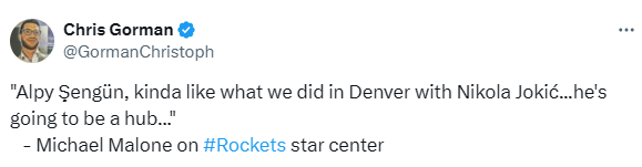 前掘金主帅马龙盛赞申京:现在角色很像约基奇 是球队进攻发起核心