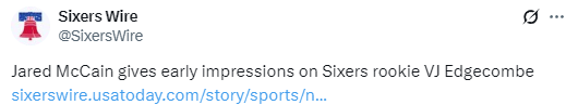 2025-10-19 15:30北京时间10月19日,76人队球员麦凯恩谈到了自己的队友埃奇库姆,尽管麦凯恩目前因拇指伤势只能在场边观战,但他仍然对这位新科探花给予高度赞扬。