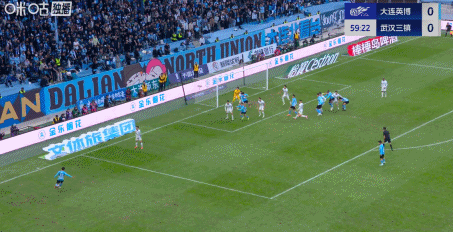 第60分钟,马马杜连续错失良机,先是头球攻门被郭嘉宇神扑挡出底线,随后角球进攻,后点高高跃起的头球攻门击中横梁。