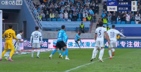 第10分钟,大连英博反击,刘祝润禁区内将球做给朱鹏宇,朱鹏宇近距离推射被郭嘉宇扑出。