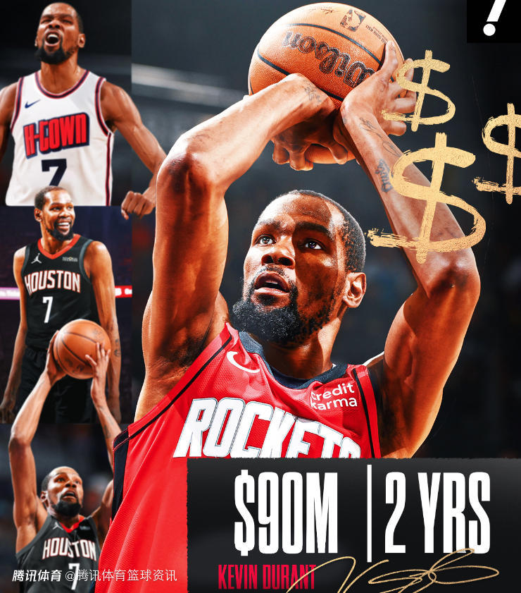 杜兰特续约更多细节:有望在休斯顿结束职业生涯 早就清楚需要在薪资上做牺牲
