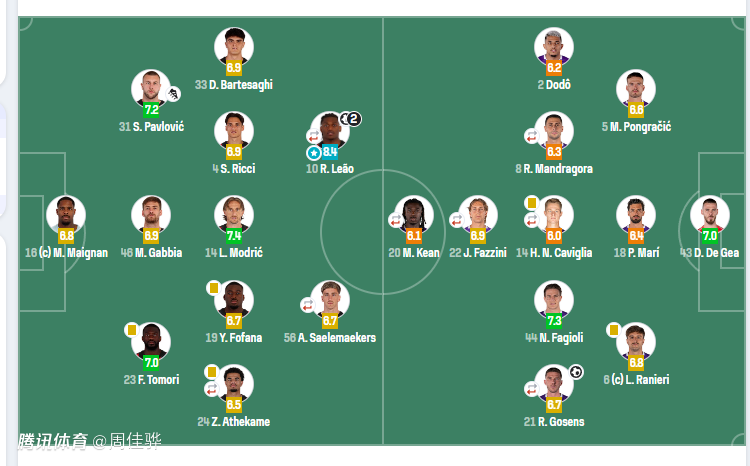 中场:21-戈森斯(69’65-帕里西)、44-法乔利、14-尼科卢西(87’7-佐姆)、8-曼德拉戈拉(88’9-哲科)、2-多多