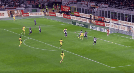 第63分钟,帕夫洛维奇横传,莱奥摆脱曼德拉戈拉,右脚抽射破网,AC米兰扳平比分。