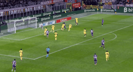 第55分钟,法乔利传向后点,拉涅利头球摆渡,迈尼昂击球不远,戈森斯踢入空门,佛罗伦萨1-0领先。