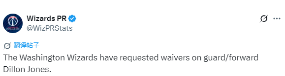 奇才官方:球队裁掉锋卫摇摆人狄龙-琼斯 球员上赛季随雷霆获队史首冠