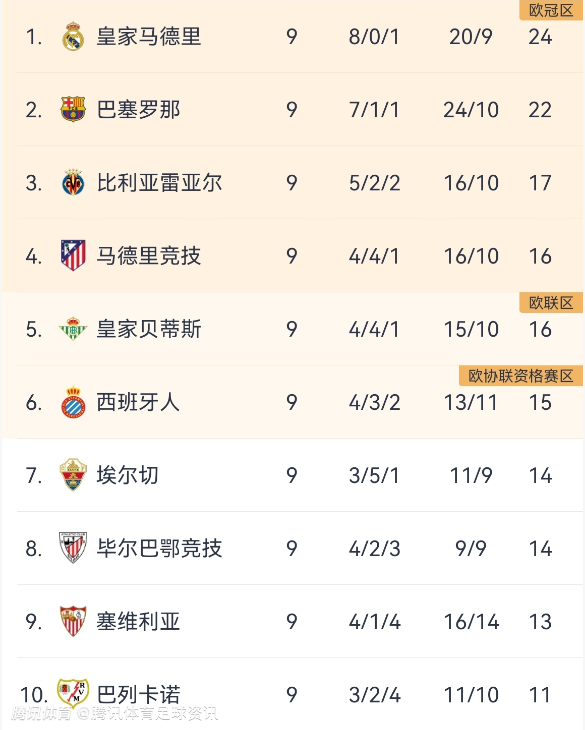 而传统豪强马竞终于是杀回来了,他们本来1-0小胜奥萨苏纳,目前以4胜4平1负积16分升到了第四。距离第三的比利亚雷亚尔只差1分了,而黄潜本轮2-2贝蒂斯没能继续扩大领先。