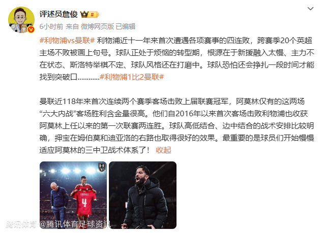2025-10-20 07:40北京时间10月20日,英超第8轮,利物浦主场1-2曼联,赛后,评述员詹俊先生在社媒做出点评。