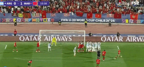 第12分钟,摩洛哥U20利用这个任意球,由扎比里左脚操刀主罚命中,摩洛哥1-0领先!