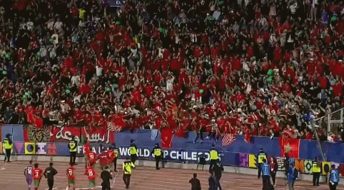 摩洛哥球迷挥舞旗帜、高歌呐喊,为冠军而狂欢。