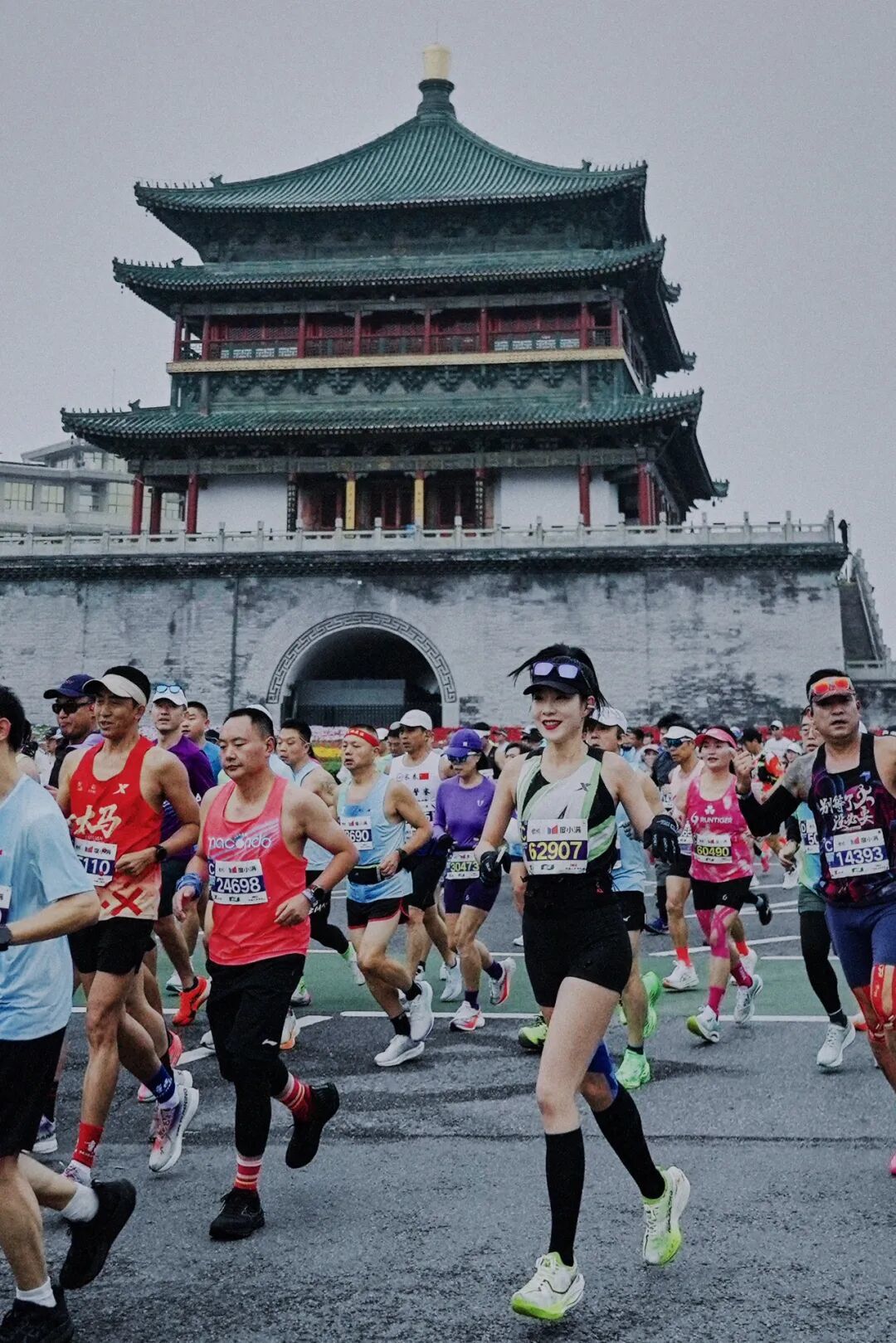 比赛当日温度适宜,跑友们热情高涨。随着发令枪响,选手们从永宁门启程,踏过钟楼斑驳的光影、穿越厚重古朴的城墙,向着半程马拉松终点国际会展中心和全程马拉松终点西安奥体中心进发。