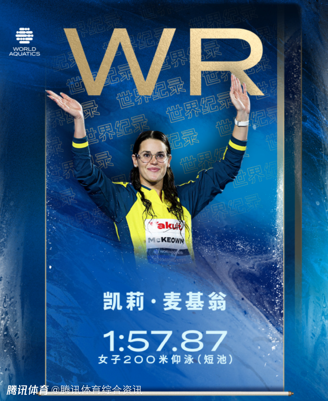 1:57.87!凯莉-麦基翁刷新女子200米仰泳世界纪录 成功夺金