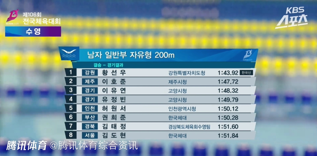尘封八年!韩国选手黄宣优打破孙杨200米自由泳亚洲纪录