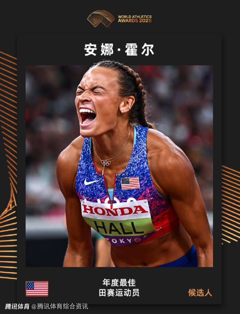 安娜-霍尔:2001年出生,美国七项全能项目运动员。青少年时期,霍尔即展现出田径运动天赋,逐步专注于女子七项全能项目的系统性训练。在2023年8月21日举行的世界田径锦标赛女子七项全能比赛中,霍尔以总分6720分的成绩获得银牌,这是其职业生涯首次登上世锦赛领奖台。上个月的东京世锦赛,她在女子七项全能比赛中,以6888分夺得金牌。