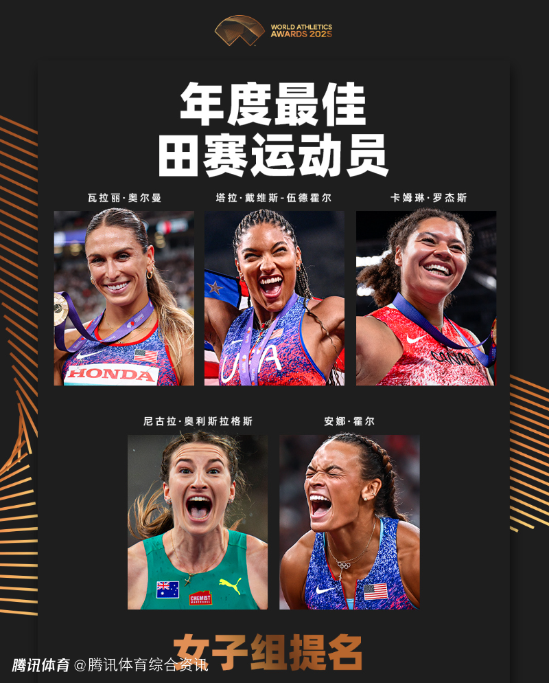 2025-10-20 18:40北京时间10月20日,2025年世界田联年度最佳田赛运动员女子组提名公布,五位提名者包括瓦拉丽-奥尔曼、塔拉-戴维斯-伍德霍尔、卡姆琳-罗杰斯、尼古拉-奥利斯拉格斯、安娜-霍尔。