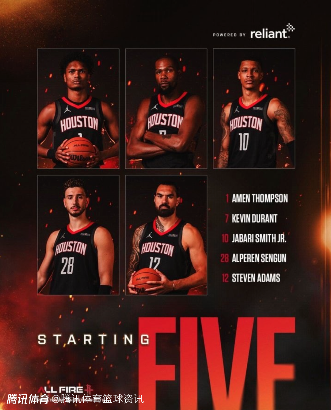继续五大!火箭揭幕战对雷霆首发确定:阿门杜兰特申京小史海王