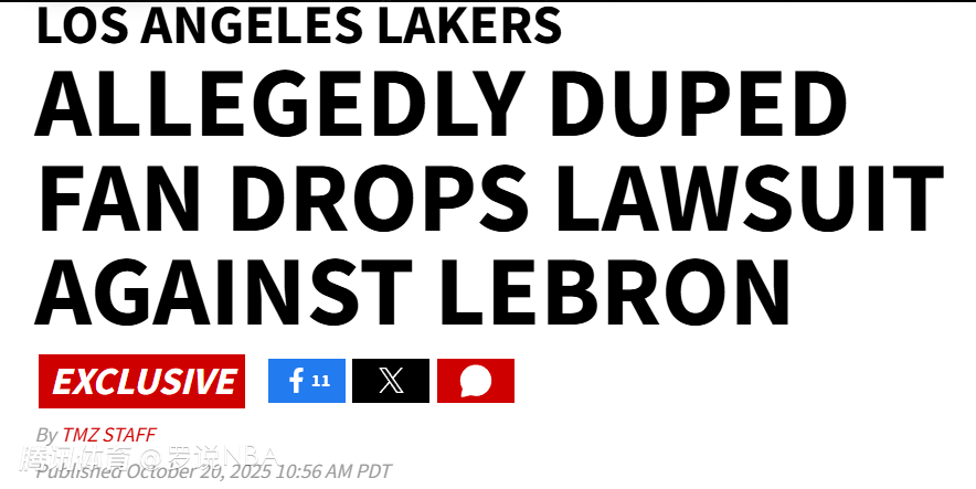 2025-10-21 06:00北京时间10月21日,据TMZ体育报道,一名声称被勒布朗-詹姆斯的“决定2”欺骗而损失金钱的湖人队球迷刚刚申请撤回对这位NBA巨星的诉讼。
