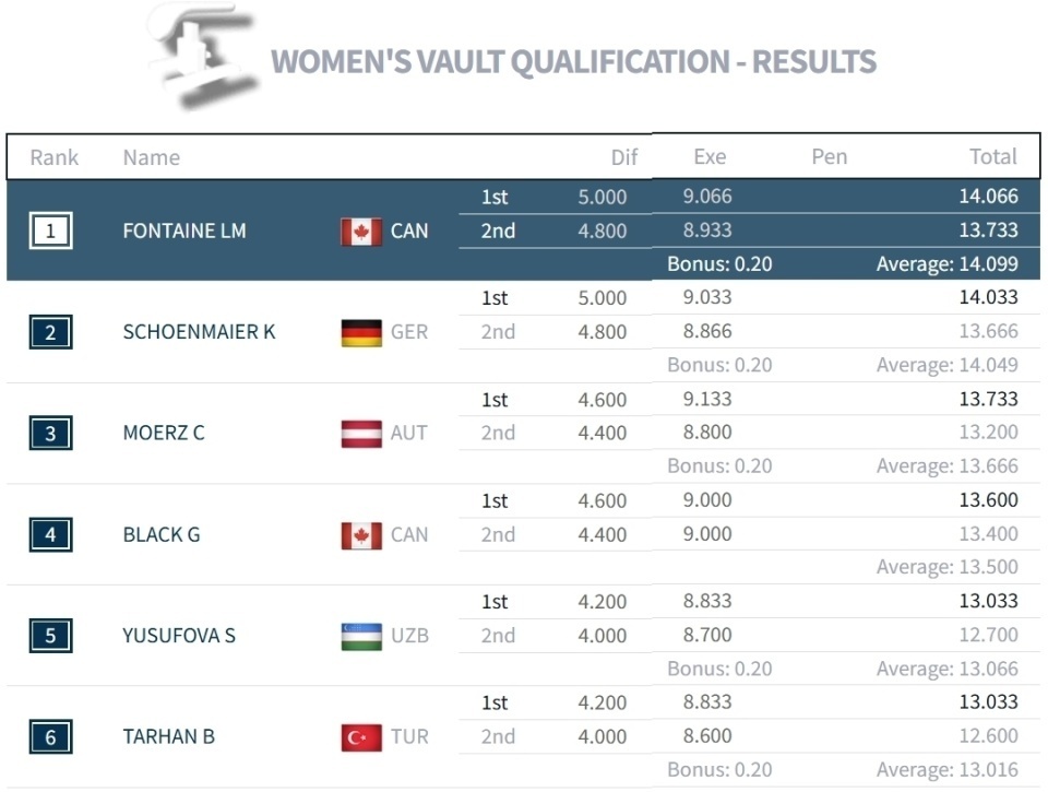 随着男子资格赛最后两组在下午结束,经过几个小时的器械更换,又进行了三组女子资格赛,虽然中国队并没有出场,但包括日本、加拿大和德国等几支强队,以及中国重点关注的阿尔及利亚名将内穆尔,都相继登场。