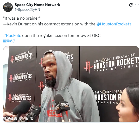 谈到提前续约火箭对于自己的意义,杜兰特表示:意义重大,这是一座篮球氛围狂热的城市,双方都渴望延续合作,更像真正的伙伴关系,我期待与球队共同成长,见证未来的发展。关键在于他们重振球队、让休城重返争冠行列的坚定决心,很荣幸能成为其中一员。