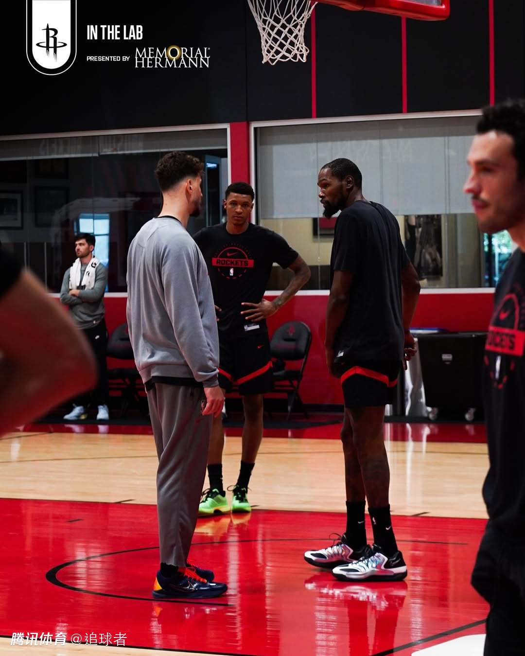 火箭众将在休斯顿完成揭幕战之前的最后一次训练,杜兰特、申京带队积极备战雷霆,最后全队围在一起喊口号;训练结束后,谈到与火箭提前续约,杜兰特表示:很兴奋,我加盟时的目标就是与这支球队共同成长,所以续约是顺理成章的决定。