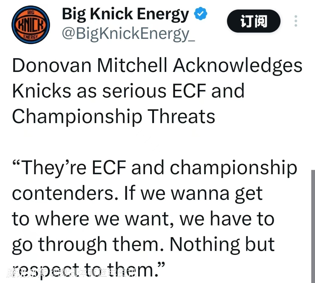 2025-10-21 09:50北京时间10月21日,NBA常规赛即将开打,骑士将对阵尼克斯。赛前,骑士核心多诺万-米切尔在接受采访时,谈及对对手的评价。