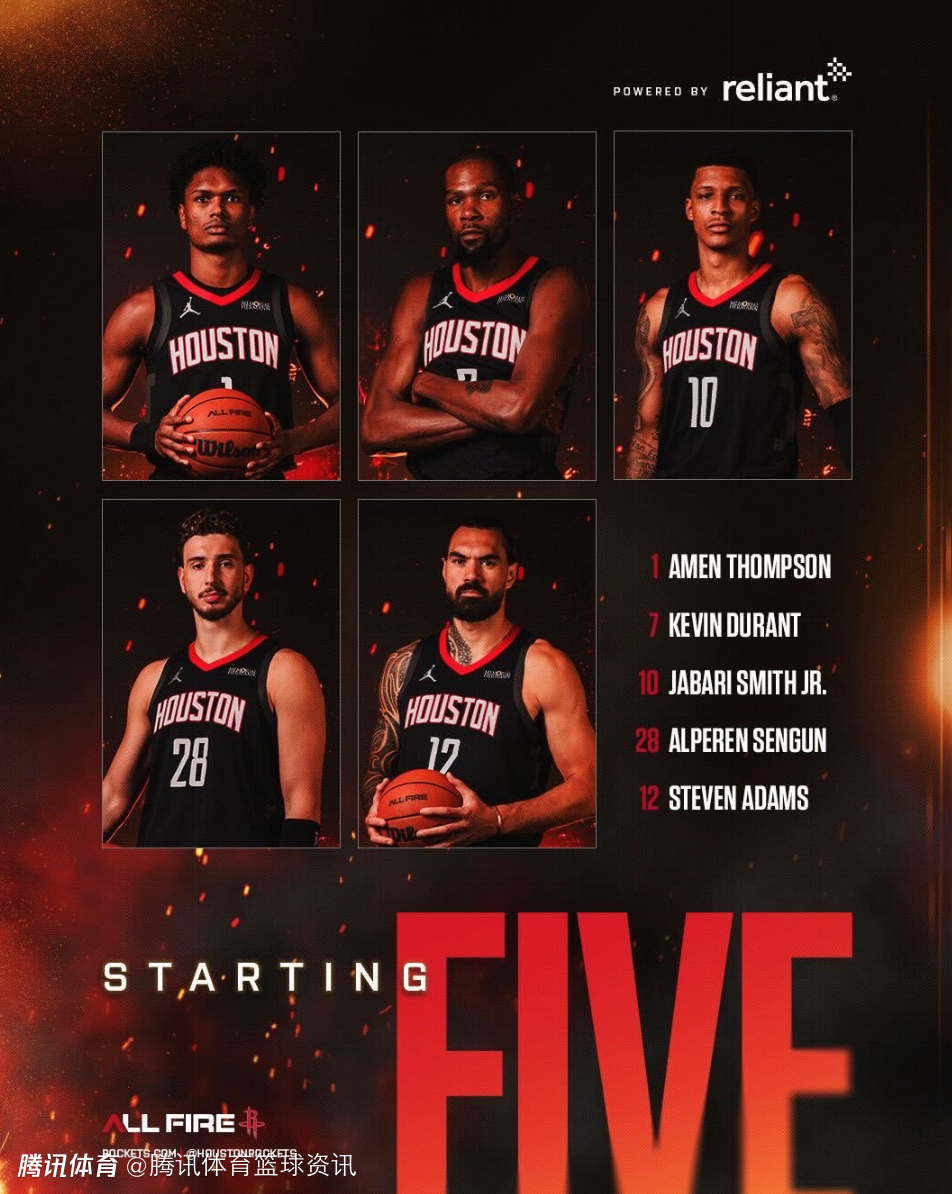 这场揭幕战,火箭将派出NBA历史上最高的首发阵容,分别是阿门、杜兰特、小贾、申京、亚当斯,后两位内线同时首发,部分原因是为了对位雷霆的内线组合霍姆格伦和哈滕。在火箭近期与鹈鹕的季前赛中,这套首发阵容曾在12分钟左右的出场时间里,净胜鹈鹕16分。“这套阵容的选择既基于我们自身的人员特点,也考虑了对手的情况,”火箭主帅乌度卡说,“他们在季前赛的表现确实不错,但显然,针对雷霆的战术需求也是重要考量因素。”