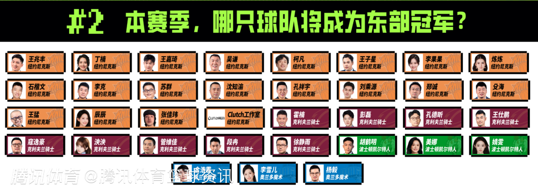 看好尼克斯的人最多,共有20人,主要代表有王兆丰、王猛、苏群、柯凡、王子星、殳海。
