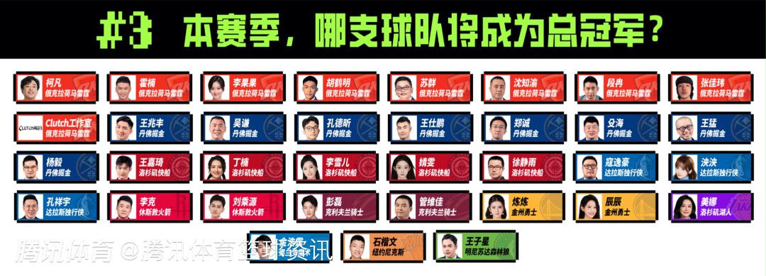 腾讯体育嘉宾预测本赛季总冠军:柯凡霍楠等人选择雷霆 殳海王猛看好掘金