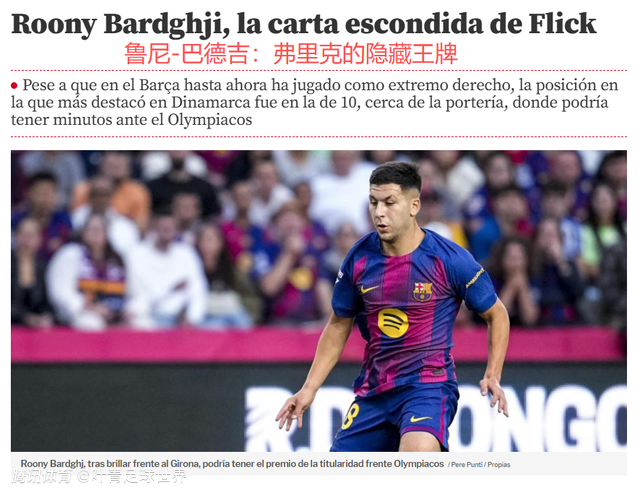 巴萨2-1击败赫罗纳的西甲之战,巴德吉替补出场,参与了阿劳霍的绝杀进球。《世界体育报》指出,欧冠对阵奥林匹亚科斯,主帅弗里克可能会给巴德吉奖励,让19岁的瑞典前锋首发出场,上演巴萨的欧冠首秀。