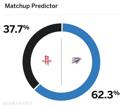 ESPN给出本场比赛胜率:火箭37.7%、雷霆62.3%。
