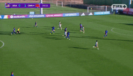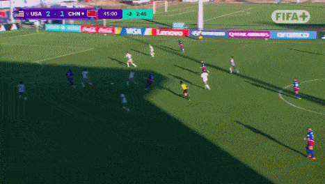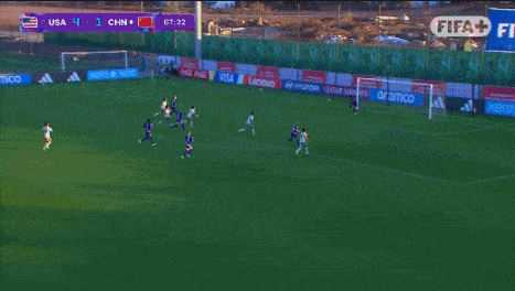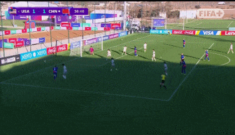 半场补时第3分钟,马尔索姆直塞,尼安亚-图雷单刀破门,美国U17女足将比分扩大至3-1。
