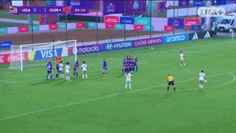 第85分钟,替补登场的曾屹婕主罚任意球直挂死角,中国U17女足扳回一城仍2-5落后。
