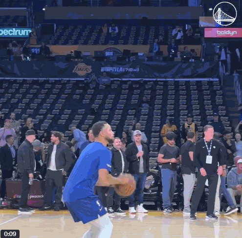 值得一提的是,除了投Logo三分之外,库里还试图完成自抛自扣,但最终他只是将球放入篮筐,随后库里又来到三分线外远投得手。湖人队记者LoJo Media也调侃道:“斯蒂芬-库里又打出了他标志性的表现。”