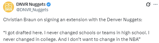2025-10-22 09:40北京时间10月22日,掘金队球员布劳恩接受媒体采访,谈到了自己与掘金队完成续约(5年1.25亿美元)的感受。