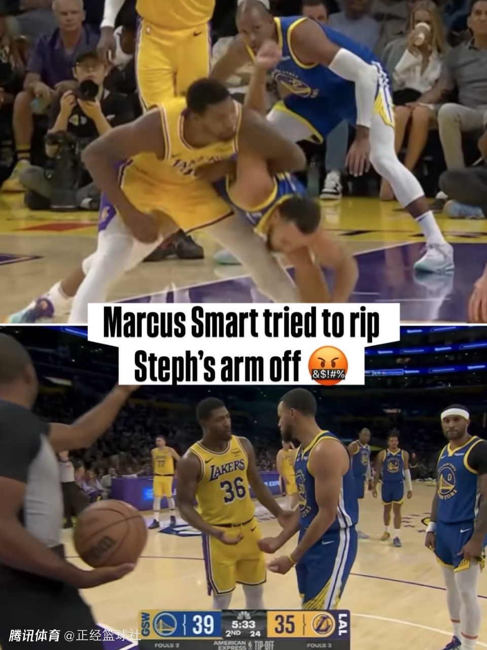 斯玛特冲上全美热搜第一!遭吐槽整场都在摔地 夹臂库里吃恶犯引争议