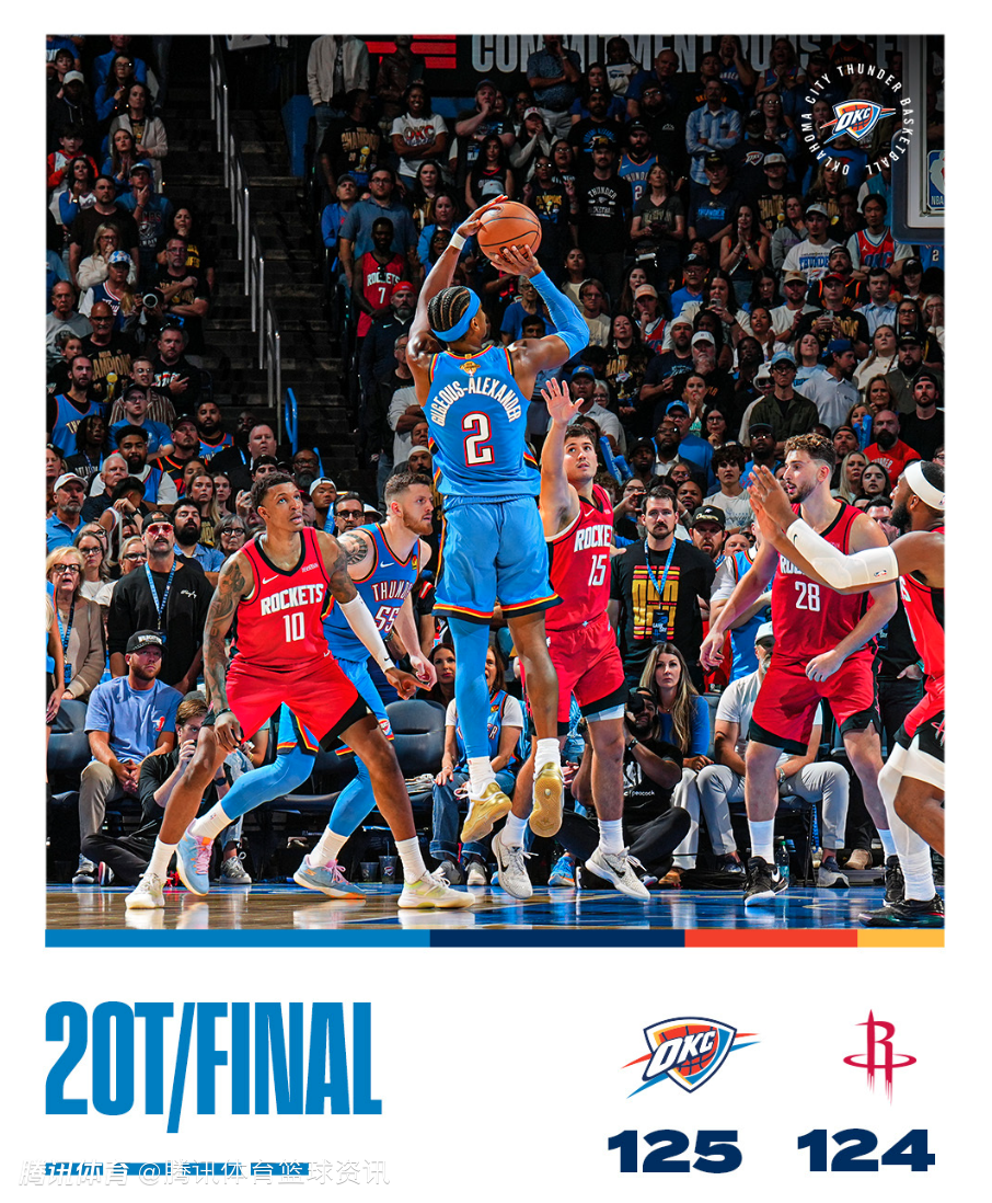 2025-10-22 13:30北京时间10月22日,NBA常规赛揭幕战,卫冕冠军雷霆通过双加时以125-124击败火箭,取得开门红。