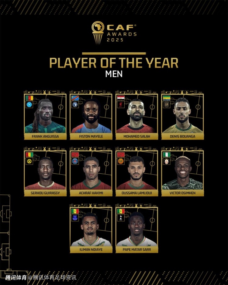 官方:非洲足联公布2025年度最佳球员候选名单 萨拉赫、奥斯梅恩等人入围