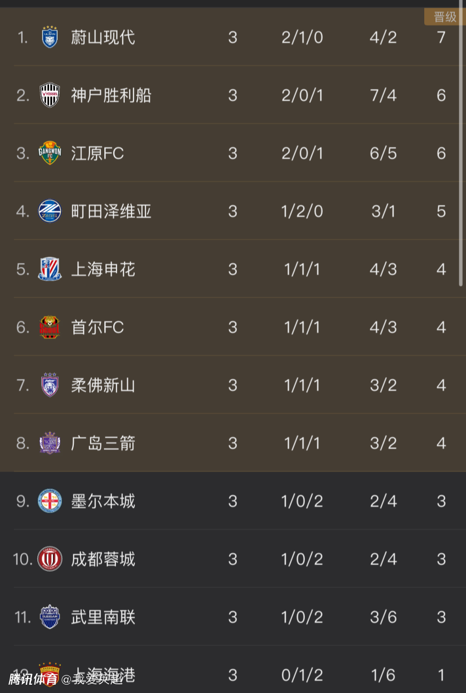3轮战罢,申花1胜1平1负积4分,升至积分榜第5位。而成都蓉城则是1胜2负积3分跌入淘汰区,海港作为目前东亚区唯一0胜的球队,以1平2负积1分排名积分榜垫底。
