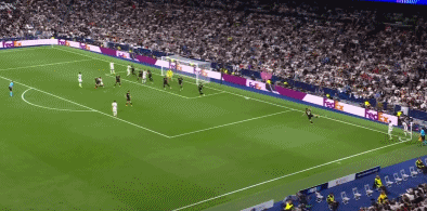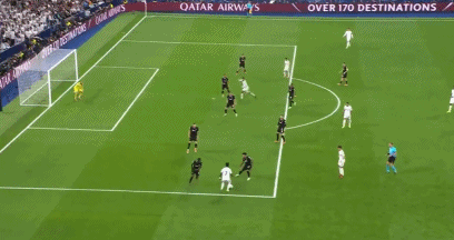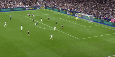 第57分钟,维尼修斯禁区左侧连续晃动后小角度斜射击中远侧立柱,贝林厄姆补射破门,1-0。
