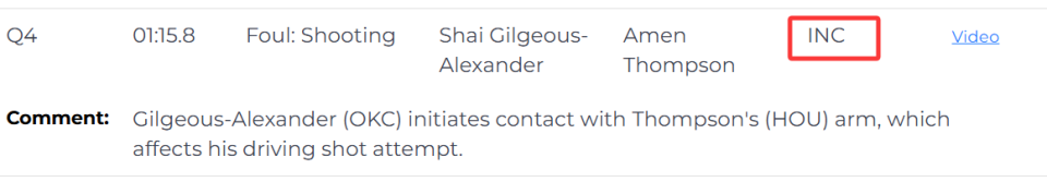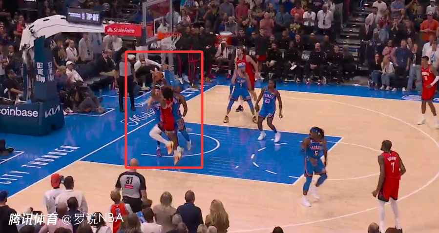 第一次漏判发生在距离第四节结束还有1分15秒。当时阿门-汤普森突破上篮,亚历山大贴身干扰,导致阿门出手不中。裁判报告显示,亚历山大与阿门的手臂发生接触,影响了他的出手,这是一次漏吹的防守犯规,阿门本该获得两次罚球机会。这次漏判,火箭吃亏,雷霆获利。